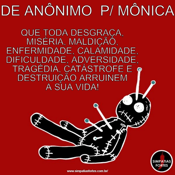 DE ANÔNIMO P/ MÔNICA… QUE TODA DESGRAÇA, MISÉRIA, MALDIÇÃO, ENFERMIDADE,…