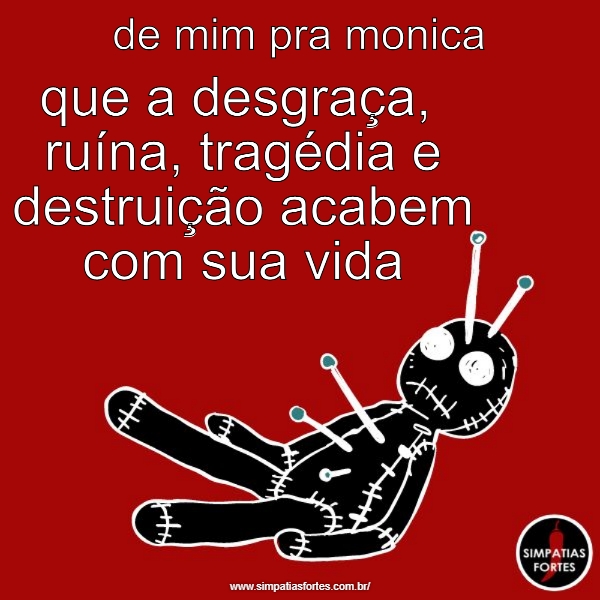 de mim pra monica… que a desgraça, ruína, tragédia e destruição acabem com sua…