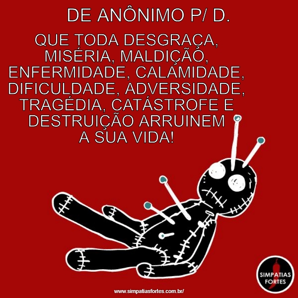 DE ANÔNIMO PARA D…. QUE TODA DESGRAÇA, MISÉRIA, MALDIÇÃO, ENFERMIDADE, CALAMIDADE,…