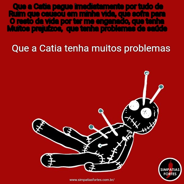 Que a Catia pague imediatamente por tudo de Ruim que causou em minha vida, que sofra…
