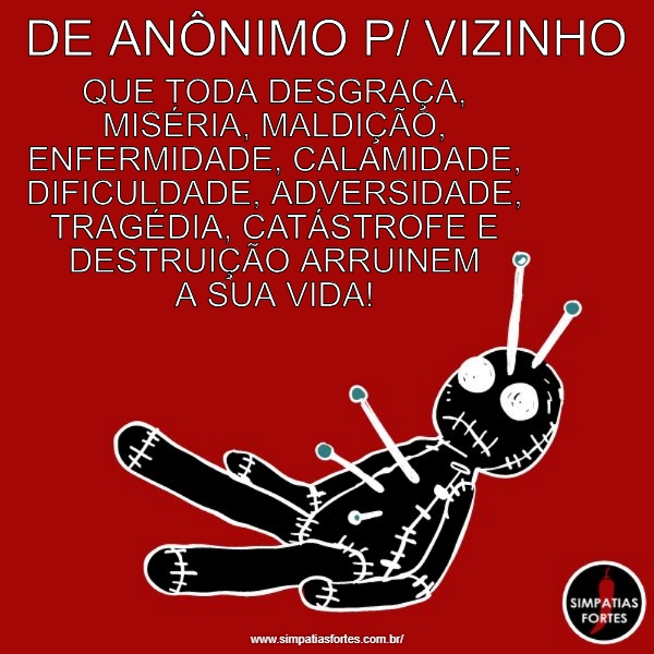 DE ANÔNIMO P/ VIZINHO… QUE TODA DESGRAÇA, MISÉRIA, MALDIÇÃO, ENFERMIDADE,…
