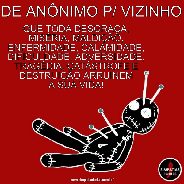DE ANÔNIMO P/ VIZINHO… QUE TODA DESGRAÇA, MISÉRIA, MALDIÇÃO, ENFERMIDADE,…