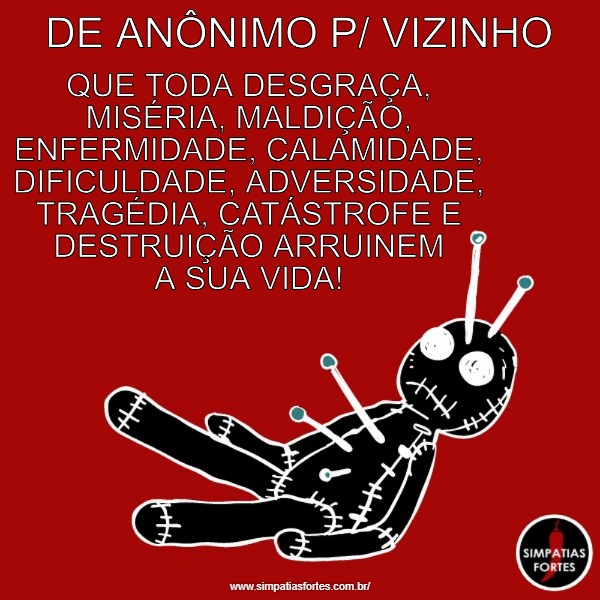 DE ANÔNIMO P/ VIZINHO… QUE TODA DESGRAÇA, MISÉRIA, MALDIÇÃO, ENFERMIDADE,…