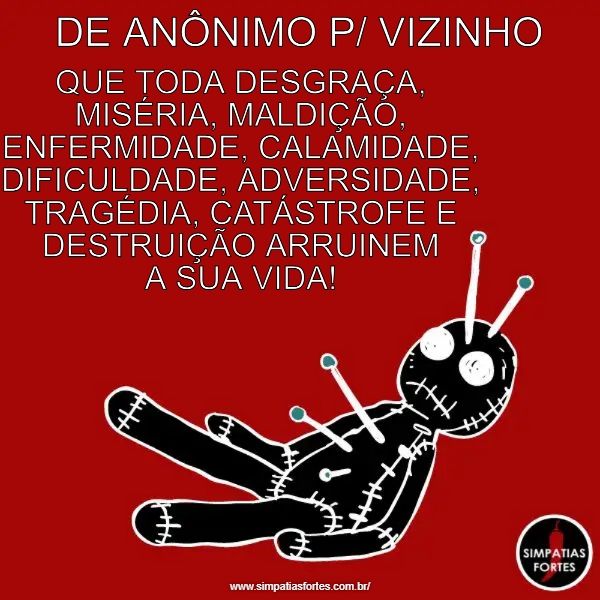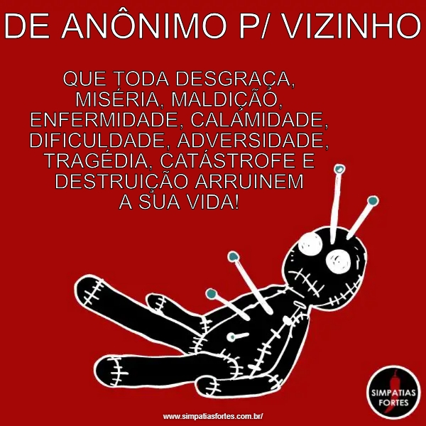 DE ANÔNIMO P/ VIZINHO… QUE TODA DESGRAÇA, MISÉRIA, MALDIÇÃO, ENFERMIDADE,…