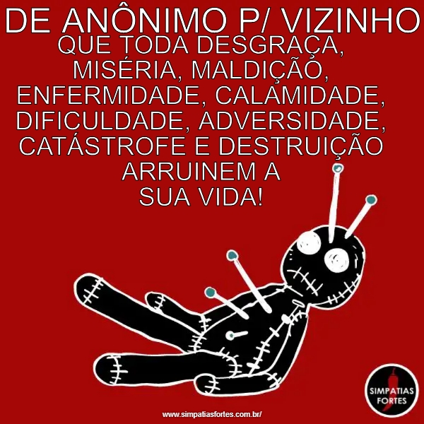 DE ANÔNIMO P/ VIZINHO… QUE TODA DESGRAÇA, MISÉRIA, MALDIÇÃO, ENFERMIDADE,…