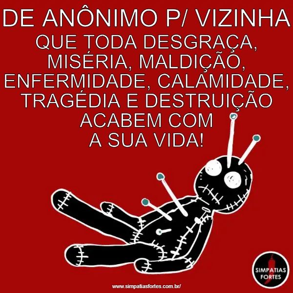 DE ANÔNIMO P/ VIZINHA… QUE TODA DESGRAÇA, MISÉRIA, MALDIÇÃO, ENFERMIDADE,…